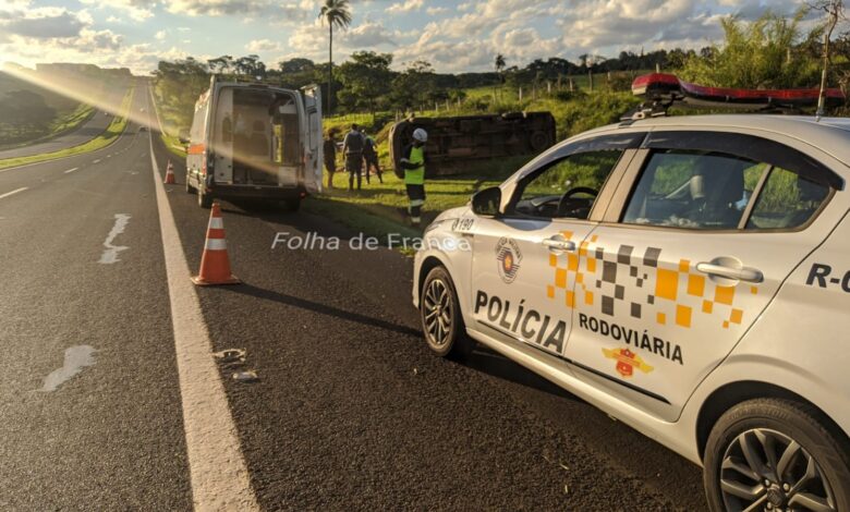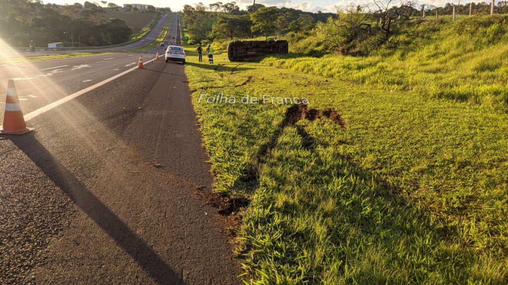 A Polícia Militar Rodoviária registrou na tarde deste sábado, 27, um tombamento de uma Van no KM 27 da Rodovia Engenheiro Ronan Rocha em Franca. Segundo informações de uma das vítimas, três pessoas ocupavam o veículo e seguiam no sentido Patrocínio Paulista a Franca, quando um veículo freou bruscamente em sua frente. Para evitar a colisão o motorista da Van também freou, mas acabou perdendo o controle e saindo para o acostamento e só parou após tombar. Por sorte dois dos três ocupantes sofreram ferimentos leves e foram socorridos pelo Resgate da ViaPaulista até o pronto socorro.