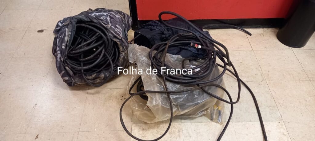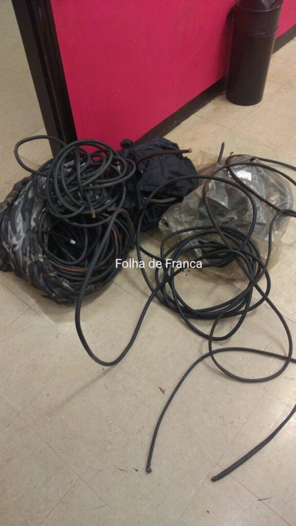 A Polícia Militar flagrou na madrugada deste sábado três indivíduos portando cabos de energia de 35mm de origem suspeita. A abordagem se deu após denúncia feita ao Copom (Centro de Operações da Polícia Militar do Estado de São Paulo). Viaturas próximas ao local apontado identificaram os suspeitos com as características indicadas e portando sacos pretos. Ao abordá-los, verificaram se tratar de fios de alta tensão usados na construção civil, porém os indivíduos não souberam informar a origem dos materiais. A PM apreendeu os objetos e levou os indivíduos para prestar esclarecimentos à polícia judiciária.