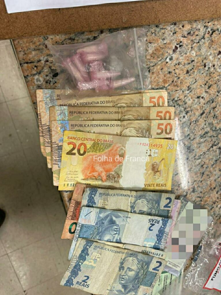 Cocaína e dinheiro apreendidos pelos policiais, em Cristais Paulista