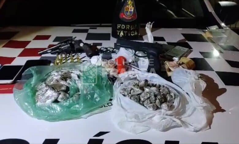 - Também foram apreendidas três balanças de precisão, um revólver calibre 32 carregado com cinco munições, 14 cápsulas deflagradas do mesmo calibre, um coldre, um simulacro de pistola preto, um soco inglês cromado e três smartphones, sendo um de propriedade do acusado.