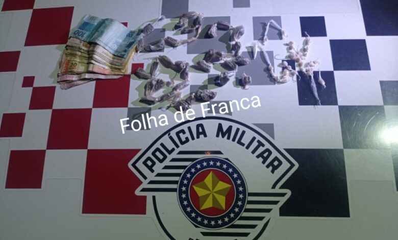 Um traficante foi preso na noite de ontem, 17, após ser flagrado vendendo drogas no bairro São Francisco, em Batatais. No momento do flagrante foram encontradas com o suspeito diversas porções de crack, maconha e cocaína. De acordo com informações da Polícia Militar, a equipe realizava patrulhamento no bairro quando na Rua Viela Vereador Jacomo Rampim, conhecida como “matadouro”, perceberam um indivíduo entregando algo para outro. No momento em que perceberam a viatura, ambos correram, sendo apreendidos logo depois.