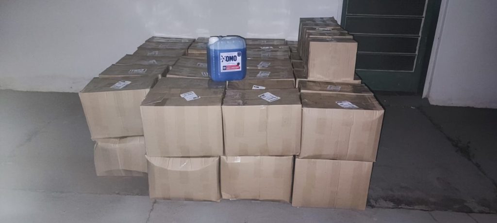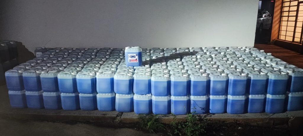 Durante a abordagem, nada de ilícito foi encontrado na busca pessoal dos suspeitos. No entanto, ao serem questionados sobre a carga transportada, eles informaram que se tratava de sabão líquido da marca OMO. Ao serem solicitadas as notas fiscais, os abordados admitiram não possuir documentação e confessaram que os produtos eram falsificados.