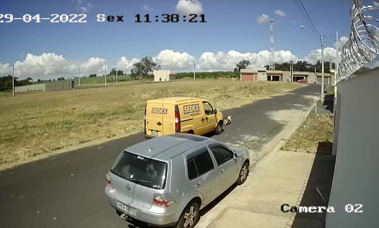 ASSISTAM! Vídeo flagra carro dos Correios atropelando cachorro em Pedregulho