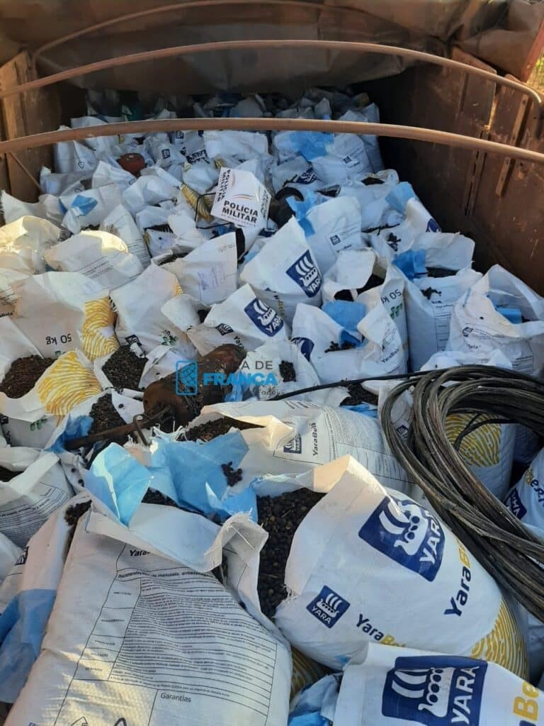 De acordo com a Polícia Militar, durante patrulhamento na zona rural de Ibiraci (MG) os policiais perceberam dois automóveis e um caminhão que estava com a placa coberta. O fato chamou a atenção da equipe, que passou a perseguir os veículos.