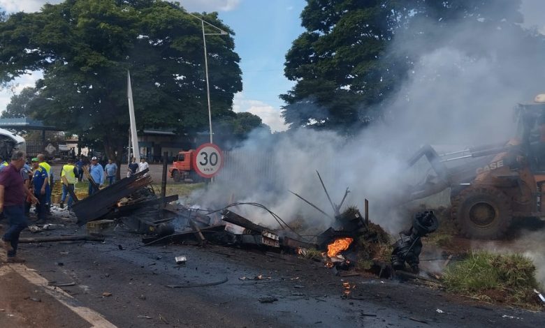 De acordo com as primeiras informações, um caminhão perdeu o controle da direção e colidiu frontalmente. Na sequência, o veículo foi tomado por um incêndio de grandes proporções, com chamas que se espalharam rapidamente e deixaram a cena crítica.