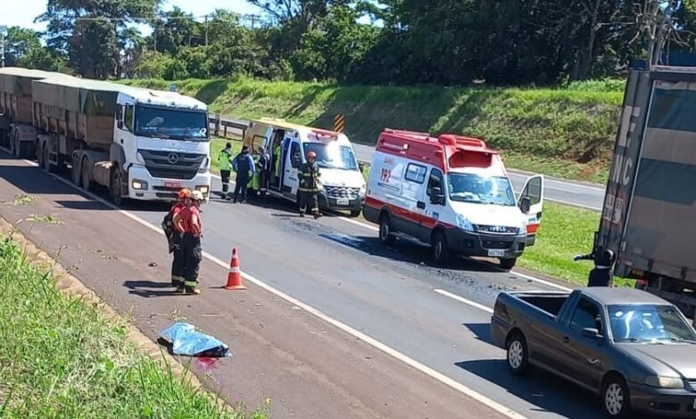 Homem morre atropelado por caminhão ao tentar atravessar rodovia na região