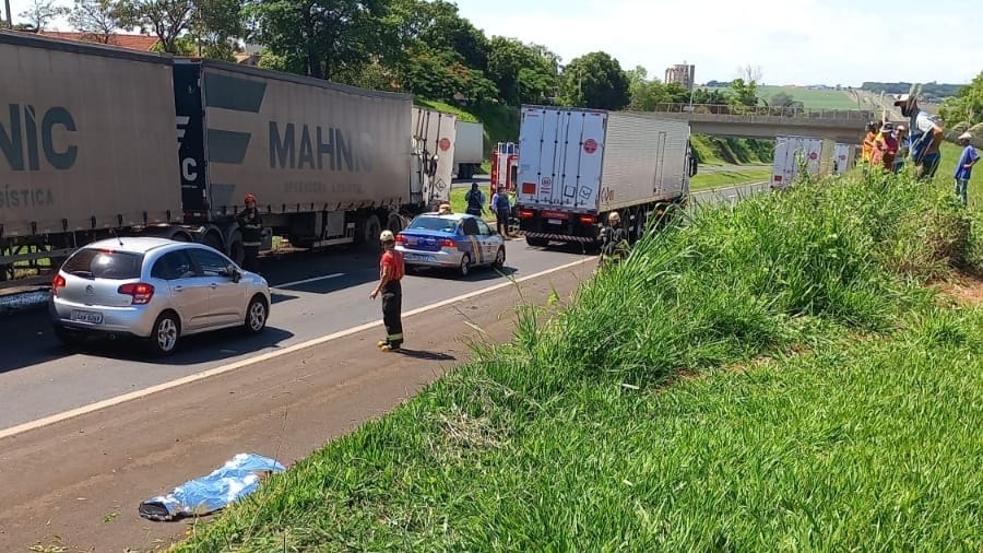 Um homem que ainda não teve a identidade divulgada morreu na manhã desta quinta-feira, 2, após tentar atravessar a rodovia Anhanguera no município de Orlândia. Segundo informações, após o atropelamento um outro caminhão que vinha logo atrás não conseguiu evitar o acidente e acabou colidindo na traseira da carreta. Os dois veículos ficaram atravessados no canteiro central e na faixa de rolamento da rodovia.