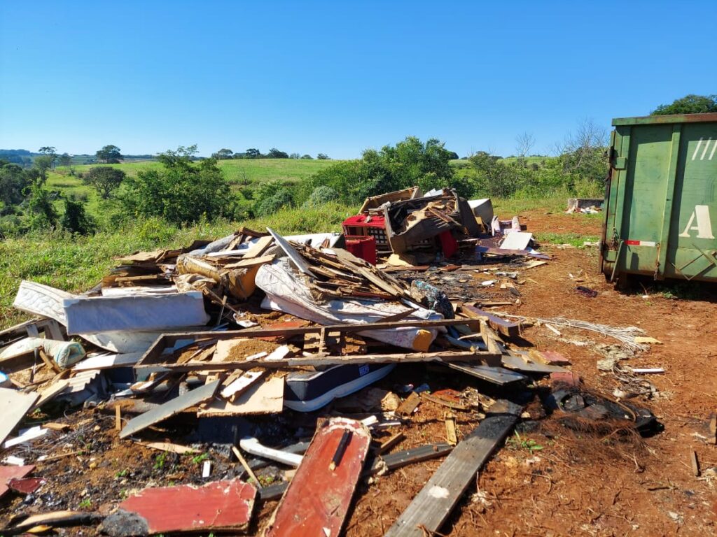 “Aí a Prefeitura veio, começou a pegar esse lixo espalhaod, leva para um barranco e cobre de terra. É um aterro sanitário não autorizado. A Cetesb já veio até aqui, já notificou a Prefeitura, o Ministério Público também já foi acionado. Mas nada foi resolvido até o momento”, disse ele. Nas imagens abaixo é possível ver o local onde o lixo é depositado e a máquina da prefeitura aterrando o lixo.