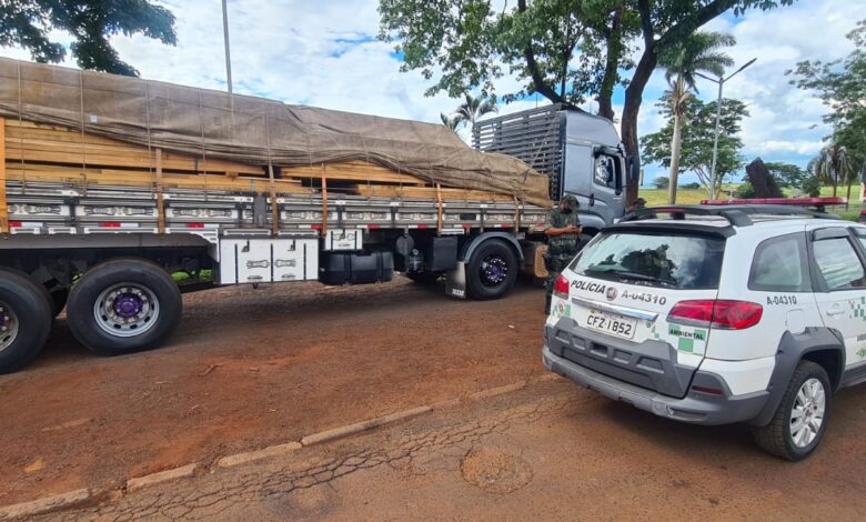 Operação da Polícia Ambiental fiscaliza transporte de madeira nativa