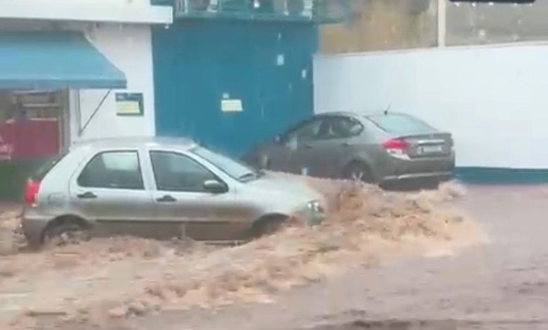 Entre os principais impactos, uma das ruas mais movimentadas ficou completamente tomada pela água, transformando-se em um verdadeiro rio. O nível da água chegou a cobrir carros estacionados e, em alguns trechos, a força da correnteza foi tão intensa que chegou a arrastar um veículo.