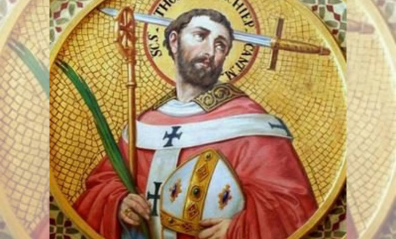 São Tomás Becket foi arcebispo de Cantuária e se destacou por sua firme defesa da liberdade da Igreja diante das pressões do rei Henrique II da Inglaterra. Sua fidelidade à fé e sua coragem o levaram a ser assassinado dentro da catedral em 1170.