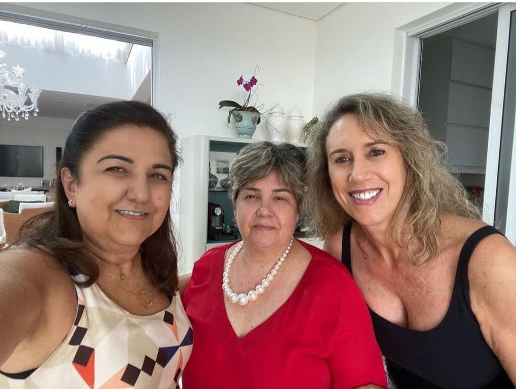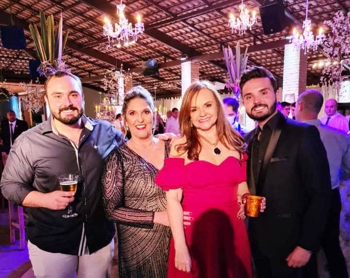 Sônia Trevisan é a orgulhosa mãe da noiva Júlia (acima). Ela é secretária há 12 anos da cirurgiã dentista dra Maria Paula Pereira Figueiredo Nascimento, madrinha de crisma de Júlia, que aparece na foto junto com seus filhos Gabriel e Luiz Felipe Nascimento, celebrando a ocasião.