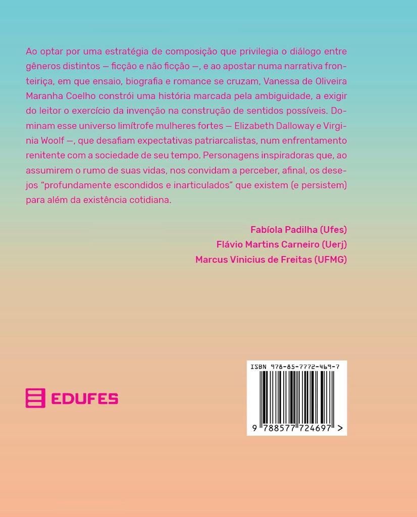 Daí idealizei, a partir da ideia original de Cunningham, a ficção da ficção, um livro que discute, a partir das inquietações feministas de VW, o lugar da mulher naquele e nesse mundo, dando fôlego à personagem filha de Clarissa. Um livro que já como projeto foi participante do Pitching Amazon KDP na FLIP 2017. Posteriormente, em 2018, ficou finalista ao Prêmio de Incentivo à Publicação Literária, 100 Anos da Semana de Arte Moderna de 1922-2018 do extinto Ministério da Cultura e, conforme já mencionado, 2020 foi premiado e lançado na Universidade Federal do Espírito Santo, em Vitória (ES).