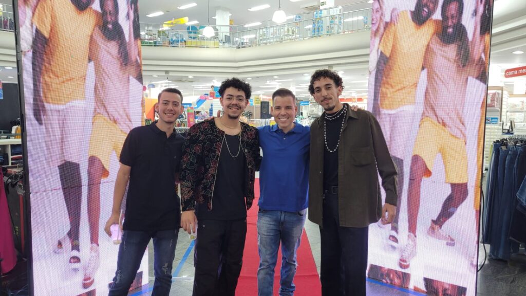 Eles sempre estão juntos, são jovens, dinâmicos e prestativos em tudo que fazem. Mauro César, João Marcolino e Juliano Finotti estiveram presentes no coquetel de lançamento de uma nova marca de roupa e não perderam oportunidade de tirar uma foto com Tiago Valentim, apresentador do Balanço Geral da Record Interior.