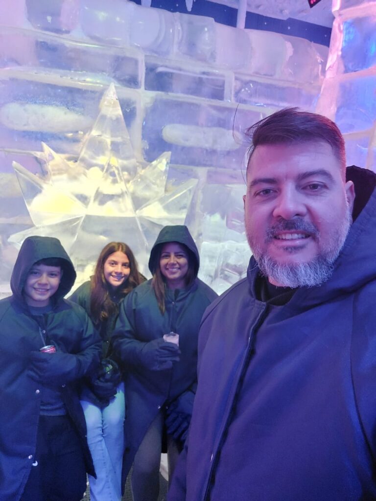 A família é o alicerce da vida. É a base para a vida, é como uma árvore, assim como os galhos, todos crescemos em direções diferentes, mas a nossa raiz continua sendo a mesma. E me orgulho muito da minha família. E como sempre eles jamais se separam um do outro, na foto estão eles, meu filho Carlos Eduardo, minha nora Daiane e meus netos Gustavo e Eduarda no bar do Gelo, em Campos do Jordão, comemorando aniversário.