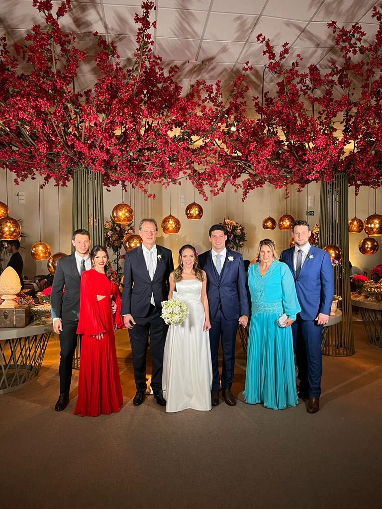 O casamento é mais do que um compromisso para toda vida, ele é a missão mais bela do amor. O querido Marco Aurélio Pegolo dos Santos, “o Chui”, e sua esposa, Doracelia Borges dos Santos, a “Dodô”, estão felizes e radiantes, pois no dia 17 deste mês casaram seu filho Caio Borges dos Santos, com Lara Boto. O casamento foi realizado no Mosteiro de Claraval e a recepção para seus convidados foi no espaço de eventos Chácara Olhos D’ Água. Confira na foto Chuí e Dodô com seus filhos e noras, Cauê Borges dos Santos e Deborah Chiareli Santos; Lara e Caio e Bruno. Parabéns ao casal pelo elance matrimonial.