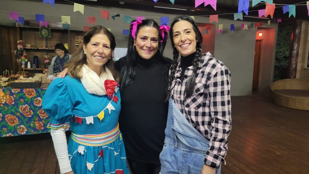Tudo estava impecável, com vestidos feitos com retalhos, chitas, bandeirinhas, balões, xadrez, além da decoração no interior do local…teve até fogueira. E não há nada melhor que uma boa e deliciosa comida típica como a que foi servida aos convidados. Forró e outras músicas para dançar não faltaram, inclusive a tradicional quadrilha, comandada pela querida e amada minha amiga Raquel Jardim. A festa não tinha lugar melhor para ser realizada, foi no Recanto do Xingu. Lá estive presente e fiz questão de registrar os momentos alegres e felizes que passei junto da Família Jardim. Na foto, uma das anfitriãs, Raquel Jardim Goulart de Andrade, e suas filhas Isabela Jardim Goulart de Andrade Bolela e Mariane Jardim Goulart de Andrade Bolela que estavam vestidas a caráter. Parabéns pela organização da festa maravilhosa.