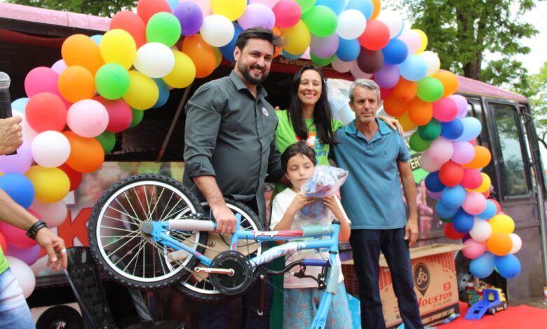 Foi linda a festa para crianças belavistences! Foram milhares de crianças que estiveram na Praça da Matriz para comemorar o seu dia. Gratidão sempre a Deus em primeiro lugar e depois ao prefeito Walter Cássio por confiar a mim sua Agenda de Cultura e Eventos. Aproveito para parabenizar a toda equipe de eventos que não mediu esforços na realização desta grande festa para as crianças. Agradecer também todos que colaboraram para que as crianças tivessem um dia muito feliz, cheio de alegrias. E aproveitamos para entregar a bicicleta ao vencedor da redação, com o tema “São José da Bela Vista dos meus sonhos” uma realização da Prefeitura em parceria com a escola de Idiomas Skill , People e Unissau, o aluno vencedor foi Filipe Venâncio Veloso, do 2° ano A; a professora é Ivanilda Noronha Megda, da EMEB José Renato Nogueira Ambrósio, e a diretora é Kelli Fernanda Murari Moura. Parabéns ao prefeito Walter Cássio, sua vice-prefeita, Maria Luiza, e a toda equipe de eventos por esta festa maravilhosa para crianças.