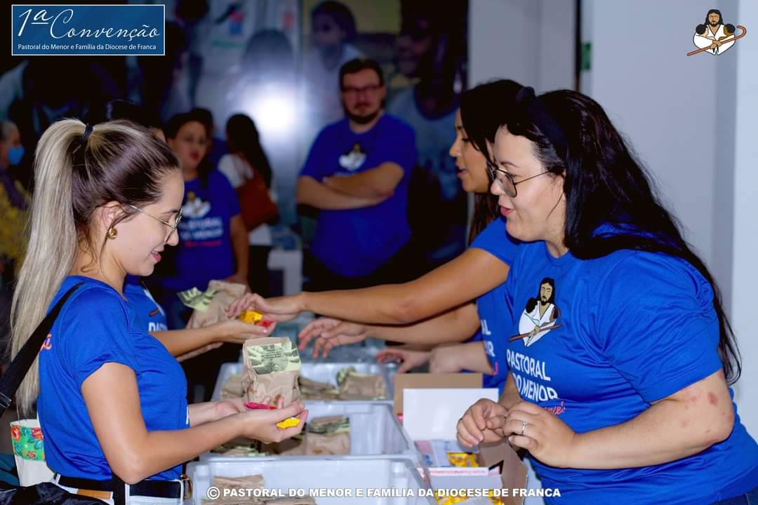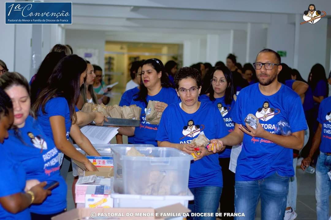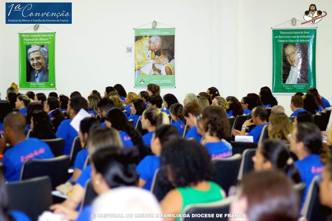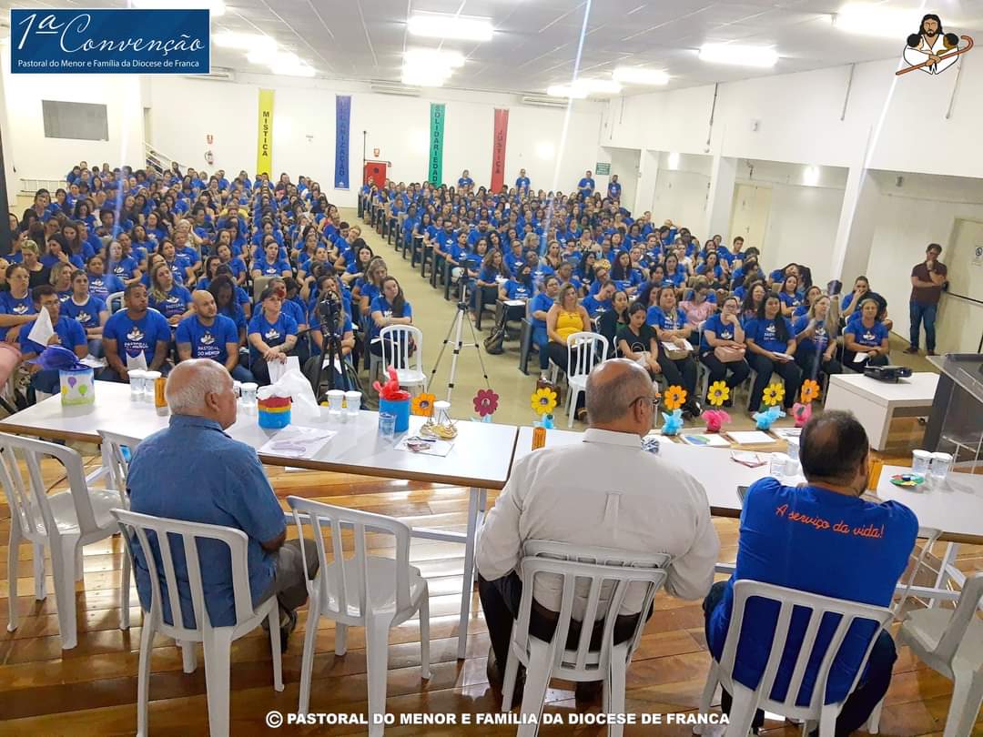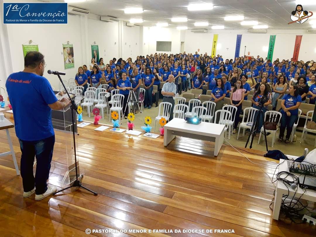 Aconteceu no último dia 25 de outubro a Primeira Convenção da Pastoral do Menor de Franca, tendo à frente o querido Padre Ovídio, que sempre fez para as nossas crianças. No encontro estiveram todos os mais de 400 agentes da Pastoral do Menor de Franca, que transformaram o auditório da Secretaria da Educação em um verdadeiro Mar Azul. Estiverem presentes também várias autoridades, incluindo o Bispo da Diocese de Franca, Dom Paulo Roberto Belloto; o Prefeito Municipal; Alexandre Ferreira; a coordenadora executiva nacional da Pastoral do Menor, Regina Leão; a vice coordenadora nacional da Pastoral do Menor, Marilda Lima, além do próprio padre Ovídio, que é presidente e fundador da Pastoral do Menor de Franca. Padre Ovídio se emocionou ao ver o tamanho e a proporção que o seu trabalho chegou e a quantidade de agentes que hoje a Pastoral do Menor de Franca possui. O prefeito Alexandre Ferreira enfatizou a todos o tamanho da Pastoral em Franca e também a importância dela nos trabalhos em conjunto e financiados pela Prefeitura Municipal. Regina e Marilda contaram um pouco sobre a Pastoral do Menor Nacional e falaram também sobre as políticas públicas. Foi uma noite de muito aprendizado, interação e participação de todos os agentes Pastoral do Menor e Família da Diocese de Franca. Parabéns a todos envolvidos pelo belíssimo trabalho que desenvolvem.