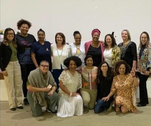 O Grupo Mulheres do Brasil, em parceria com a Unesp Franca e a Diretoria Regional de Ensino, vai realizar, a partir do próximo sábado, dia 6, a terceira edição do curso ”História e Cultura Africana e Afro-Brasileira na Perspectiva da Lei 10.639/03″. O curso conta com o apoio do Comdecon e terá 8 encontros aos sábados, das 8 às 12 horas. Foram abertas 40 vagas para o curso, mas o interesse entre professores e gestores surpreendeu e foi registrada uma lista de espera de 22 pessoas. Na foto, integrantes do Comitê Igualdade Racial, do Grupo Mulheres do Brasil, organizadoras e professoras.