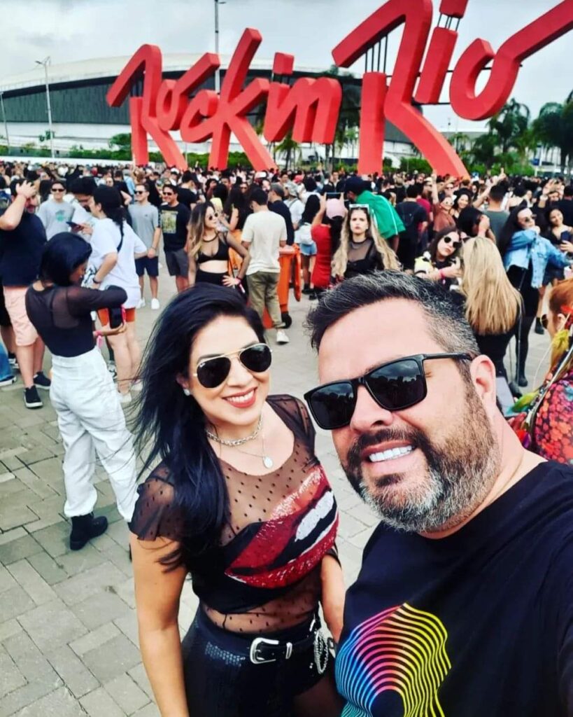 Eles não perderam a oportunidade de estar num dos maiores festivais de Rock do mundo; o diretor comercial da TV Record Interior, Rodrigo Vilaça, e sua amada roqueira Tânia Barreto Vilaça. Eles curtiram muito o evento e a cidade Maravilhosa. Sucesso sempre ao casal.