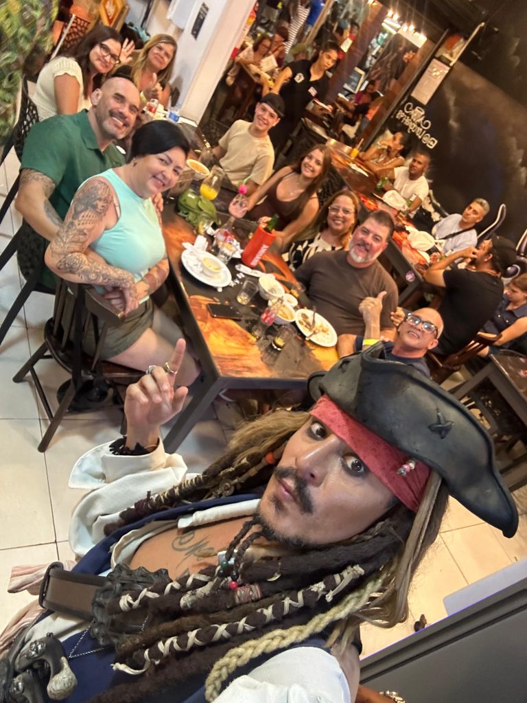 O jantar comemorativo aconteceu no temático Restaurante Chefe Pirata, conhecido por sua ambientação inspirada no universo dos piratas. Um dos momentos mais marcantes da noite foi a presença do cover do famoso personagem Jack Sparrow, que garantiu animação e interação com os convidados, tornando a celebração ainda mais especial.