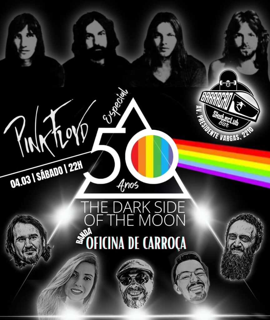 Hoje é o dia do aniversário de 50 anos do álbum The Dark Side Of The Moon. E o renomado músico Gil Reis nós informa: “Álbum que é um dos mais importantes na carreira de Pink Floyd, uma das maiores bandas que já passou por esse planeta. Para comemorar esse feito marcante, estaremos realizando uma apresentação, tocando o álbum na íntegra e mais algumas músicas que gostamos de fazer. Na banda estaremos eu, Diego Randi, Lívia Rufatto, Marquinho Sabino e Paulo Cesar Tikim. Esse evento acontecerá no Barracão Skate Clube no dia 04/03, sábado, com abertura da casa às 22 hrs e início da apresentação, às 00 hrs”.