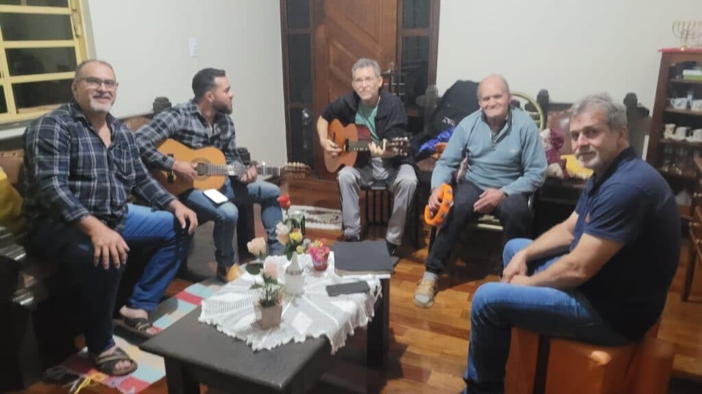 Hoje é muito difícil as famílias se reunirem para alguns momentos felizes e descontraídos. Tive a felicidade de presenciar um momento mágico, na última sexta-feira, quando recebemos a visita de meu tio Osvaldo Leite e sua esposa, a artista plástica Efigênia Maia, visita que muito nos alegrou. Foi muita conversa e muita música e só modão. Família é nossa maior riqueza. Na foto, um dos momento marcantes. Meus irmãos Osvaldo Bonifácio Geraldo Bonifácio, meu sobrinho Tiago Bonifácio, meu tio Osvaldo Leite e papai Antônio Bonifácio Netto.