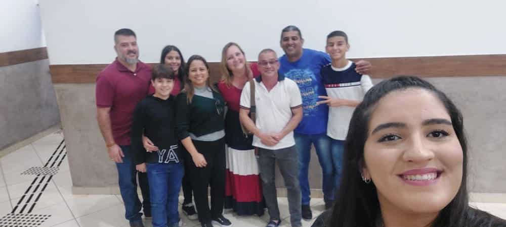 Família é uma dádiva que recebemos de Deus e aqui está minha família, no click com a família Rodrigues Oliveira, na apresentação do Monólogo “Lamento de Israel”, na sede da Igreja do Evangelho Quadrangular. Na foto, meu filho Carlos Eduardo, minha nora Daiane e os gêmeos Gustavo e Eduarda, eu e a família Rodríguez Oliveira, o casal Donizete e Valdinez e os filhos Isabela e Gabriel. Família, dom de Deus!