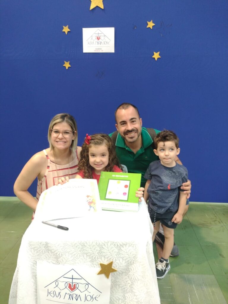Ela é uma fofura! Imagina uma criança inteligentíssima, amorosa e amiga. Liderança ela tem e muito. A linda Rafaela Ribeiro está no ensino infantil e teve suas atividades escolares, feitas sempre com muito cuidado e criatividade, impressas em um livro que conta um pouco sua trajetória como aluna e a história da sua família. Rafaela Ribeiro de 5 anos é filha do repórter da Tv Record Rafael Ribeiro e da jornalista e professora Maiara Gonçalves. Parabéns a esta garotinha que já faz sucesso desde pequena.