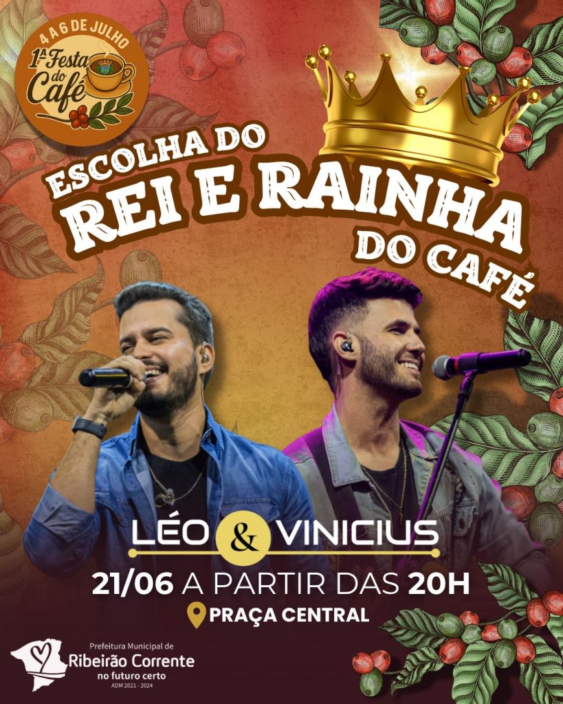Com carisma, talento e um repertório que emociona e levanta o público por onde passam, Léo & Vinícius são presença confirmada em um dos eventos mais aguardados da região: o Baile da Escolha do Rei e da Rainha do Café. A festa acontece em Ribeirão Corrente, cidade que orgulhosamente carrega o título de terra do melhor café do Brasil, e promete ser um verdadeiro espetáculo que une beleza, tradição e música de qualidade.