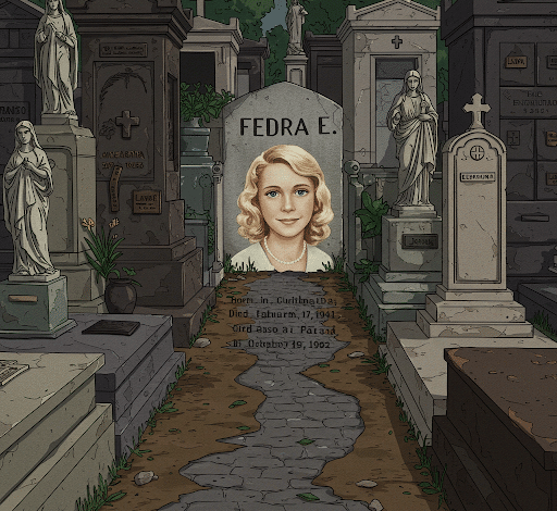 Do lado da foto, a identificação: nascida em Curitiba, no dia 17 de janeiro de 1941, falecida também na capital paranaense, em 19 de outubro de 1962, e o nome incompleto: “Fedra E.”, e nada mais se podia ler naquelas letras esmaecidas.
