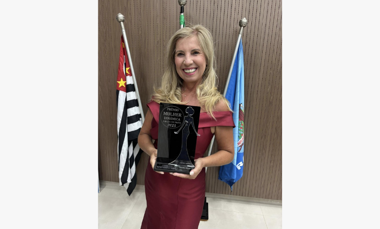 Na foto, aparece com o troféu que tanto a representa — símbolo de sua força, comprometimento e alegria em fazer acontecer.