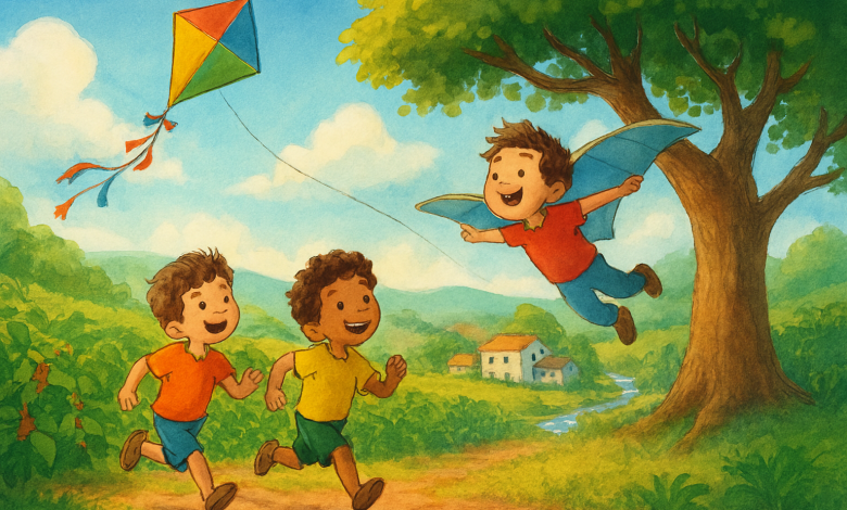 Na manhã de sol, num outubro semana das crianças, dois pequenos amigos corriam por uma trilha de terra e grama. Não se atentavam por onde passavam, com os olhos resolutos na colorida pipa que dançava numa queda lenta pelo céu azul.