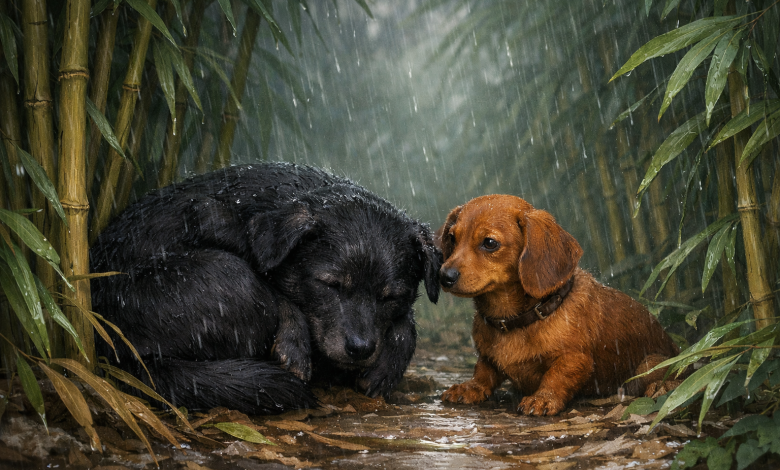 Jhully eriçou os pelos, arqueou o focinho e olhou na direção de um salsichinha que se aproximava. Ele repetiu a frase para que ela não tivesse medo, enquanto se refugiava dos primeiros pingos que caíam.