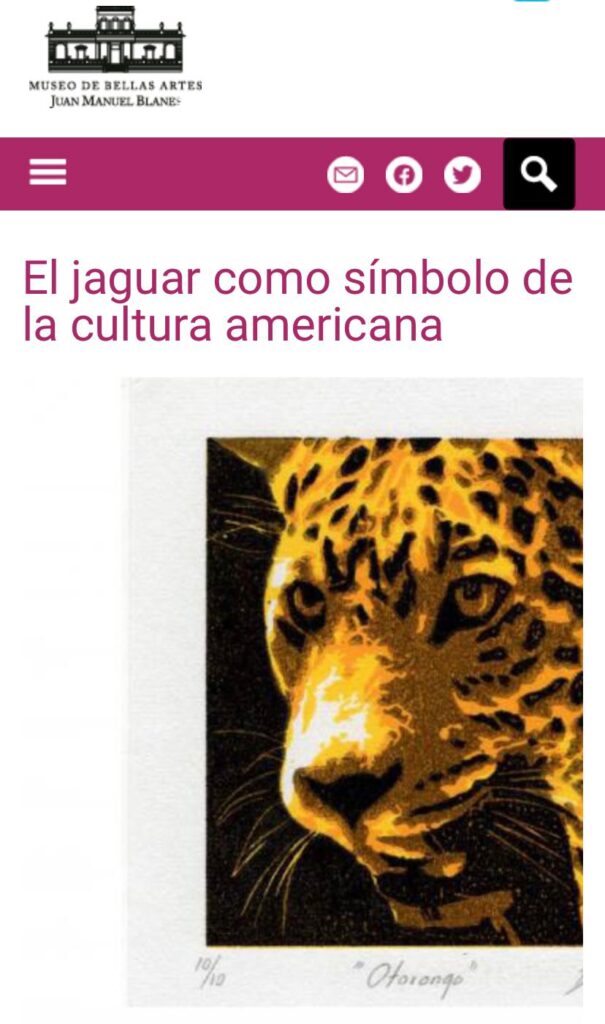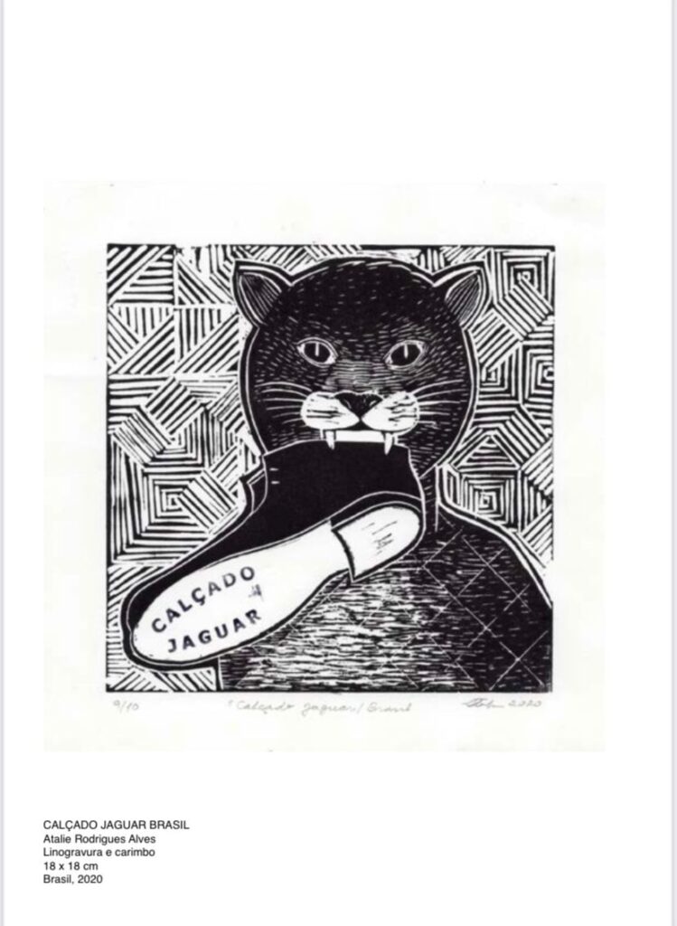 A artista plástica francana Atalie Rodrigues participa, com uma gravura da exposição ‘El jaguar como símbolo de la cultura americana’, no Museo Juan Manoel Blanes, em Montevidéu, no Uruguai.