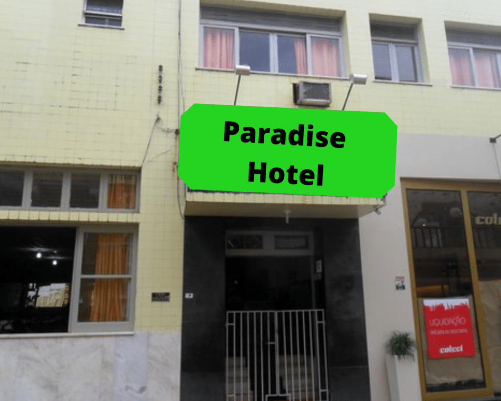 Um mundo de água. Ia ser bom o negócio. O “úbere” andou muito até estacionar em frente a um predinho com a plaquinha “Paradise Hotel”. Era ali, mas ficava longe de onde a gente viu a água. Ah, tá bom. Pagamos o “úbere”: R$ 50. Esse Paradise era nos quintos dos infernos.
