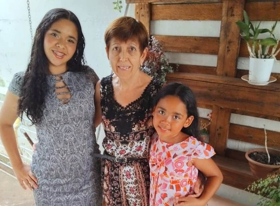 A merenda era uma delícia, e o lanche favorito dela era pão com carne. Toda sexta-feira, quando ela ia embora, a mamãe comprava pipoca de caramelo do tio Jucelino um pipoqueiro, que vendia ali na frente. Todos os dias, eu ia buscá-la com a mamãe, eu era um bebê sentada na motoquinha. A escola era bem grande, e ela nem lembra de ter conhecido a diretora, porque nunca precisou ir à diretoria. Todos a conheciam como a menina da mochila do guachinim. Naquela época, a escola não tinha computadores, mas ela se divertia muito brincando no pátio e no jardim com os amigos.