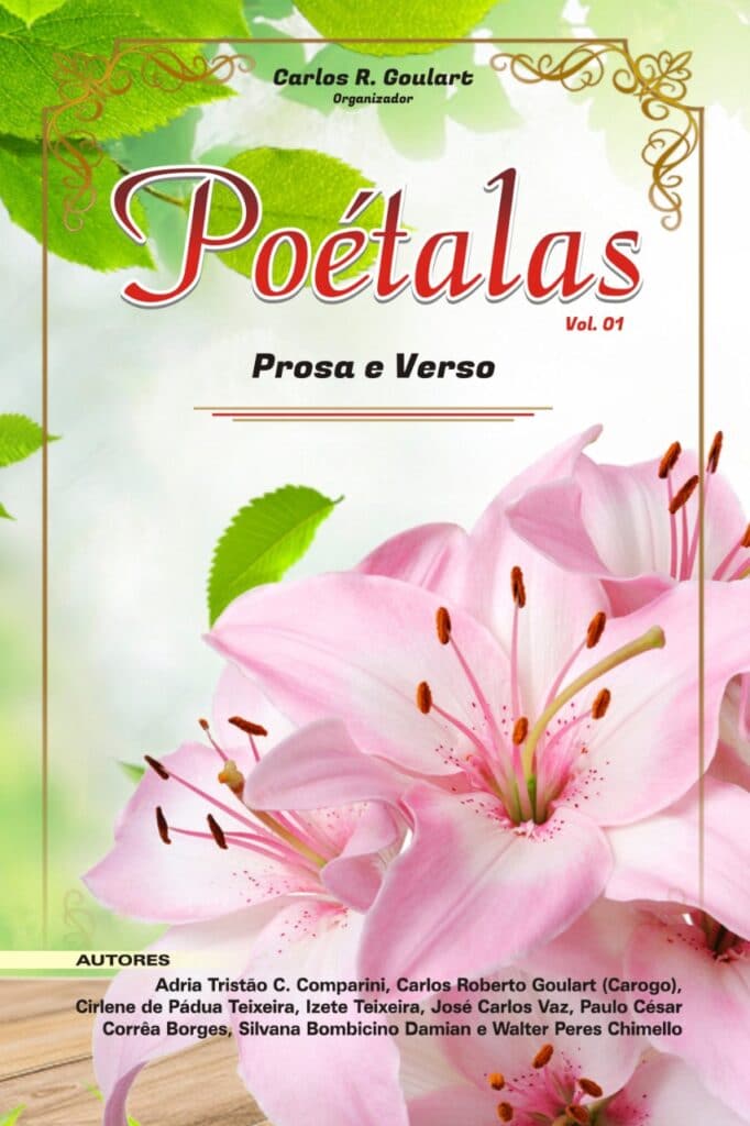 O livro tem 105 páginas e trata do amor que se revela de todas as formas. “Sem fronteiras de sentimentos, cujo itinerário poético foi o de derramar sentimentos para inspirar os amantes da poesia e da literatura como expressão máxima a exalar fragmentos de compaixão, como se bebesse do cálice da flor o néctar dos anjos celestes. “Poétalas”… há no cálice da flor a doçura de palavras perfumadas. Nesse sentido, convidei  sete  escritores poetas de Franca e Pedregulho, para compor esse primeiro volume. Somos oito autores, cada qual com doze páginas, num total de 90 poemas e prosas. O livro foi publicado por uma editora independente, de Batatais (SP)”, explica ainda.