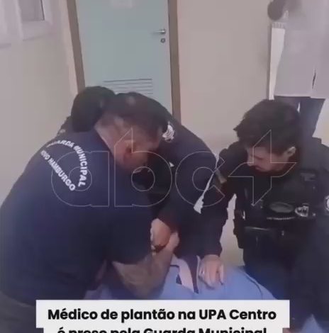 Guardas municipais que estavam na UPA se aproximaram e a confusão continuou, até que o médico foi contido, na real, jogado no chão por três guardas.