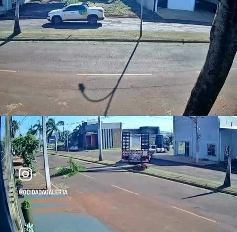 Na manhã de quinta-feira passada, um caminhão derrubou uma palmeira, localizada na entrada de Maracaju, no Mato Grosso do Sul, na Avenida Senador Filinto Muller, impedindo o trânsito no sentido centro/ bairro.