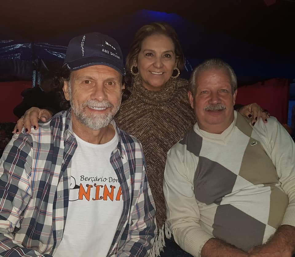 Cumprimentos da coluna ao presidente da APAE Franca, Agenor Gado, pelo aniversário esta semana. Na foto, Agenor e o casal de amigos e beneméritos, Samuel Freitas e Noedi.