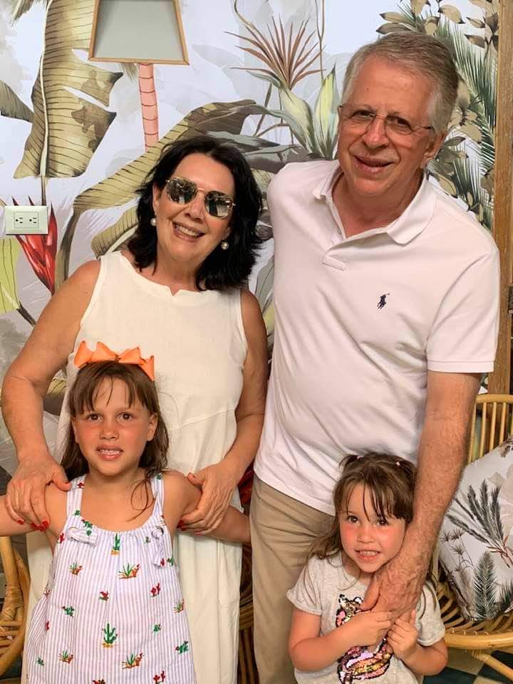 Casal Dr. Hélio Franchini e Livia curtindo  as netinhas Sophie (6) e Beatriz (4) em Bogotá, onde o filho Hélio Franchini Filho é  diplomata na Embaixada do Brasil na Colômbia.