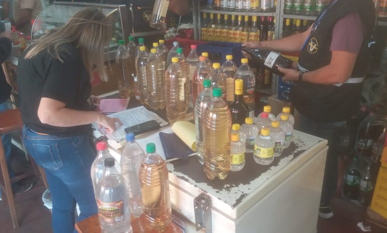 No comércio localizado no Jardim Redentor, os fiscais também encontraram irregularidades como ausência de licença de funcionamento, venda de produtos de saúde fora dos padrões e comercialização de bebidas clandestinas. Foram apreendidas oito garrafas PET de 2 litros contendo “cachaça de engenho” e 23 garrafas de “corote”, parte das quais também foi enviada para análise pericial.
