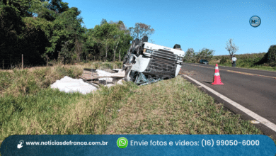 Motorista fica ferido em capotamento de carreta na rodovia Felipe Calixto