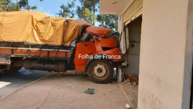 Caminhão perde o freio e só para depois de bater em parede no Distrito Industrial