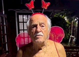 Aos 90 anos, Ary Fontoura se fantasia de borboleta para bloco de carnaval