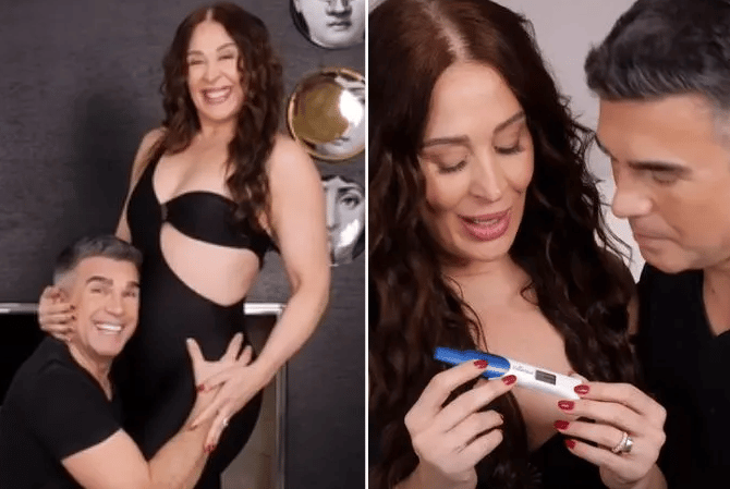 “Gente, vocês viram no feed, a notícia do ano. Eu estou que não me aguento, mas quero contar para vocês o babado todo, porque isso é que tem graça. Quando a médica me pediu um beta, o exame de sangue de gravidez, eu falei: ‘Amor, você está bem louca. De onde que você tirou isso? Eu tenho 55 anos de idade”. Aí ela falou: ‘Mas eu preciso investigar porque todas as suas taxas estão diferentes, estão estranhas”. O que que eu fiz?”, iniciou ela. Diante da suspeita, a artista relatou que correu na farmácia para comprar um teste e brincou que “quase caiu dura no chão” com a novidade.