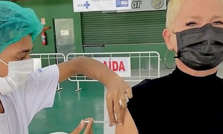 A apresentadora e cantora Xuxa Meneghel, 58, recebeu a primeira dose da vacina contra Covid-19 e se emocionou, nesta sexta-feira (4), na quadra da escola de samba Mocidade Independente de Padre Miguel no Rio de Janeiro.