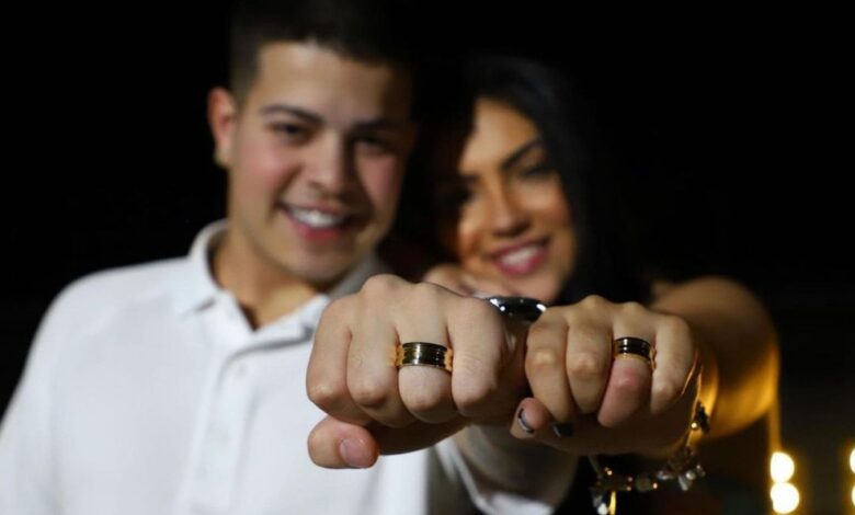 Estefany Boro também postou a foto dos dois e da mão com as alianças. Ontem namorada, noiva agora sua mulher, escreveu em sua rede social.